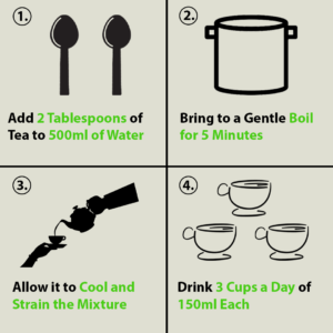 1. Add 2 tablespoons of the herbal blend to 250ml of water.